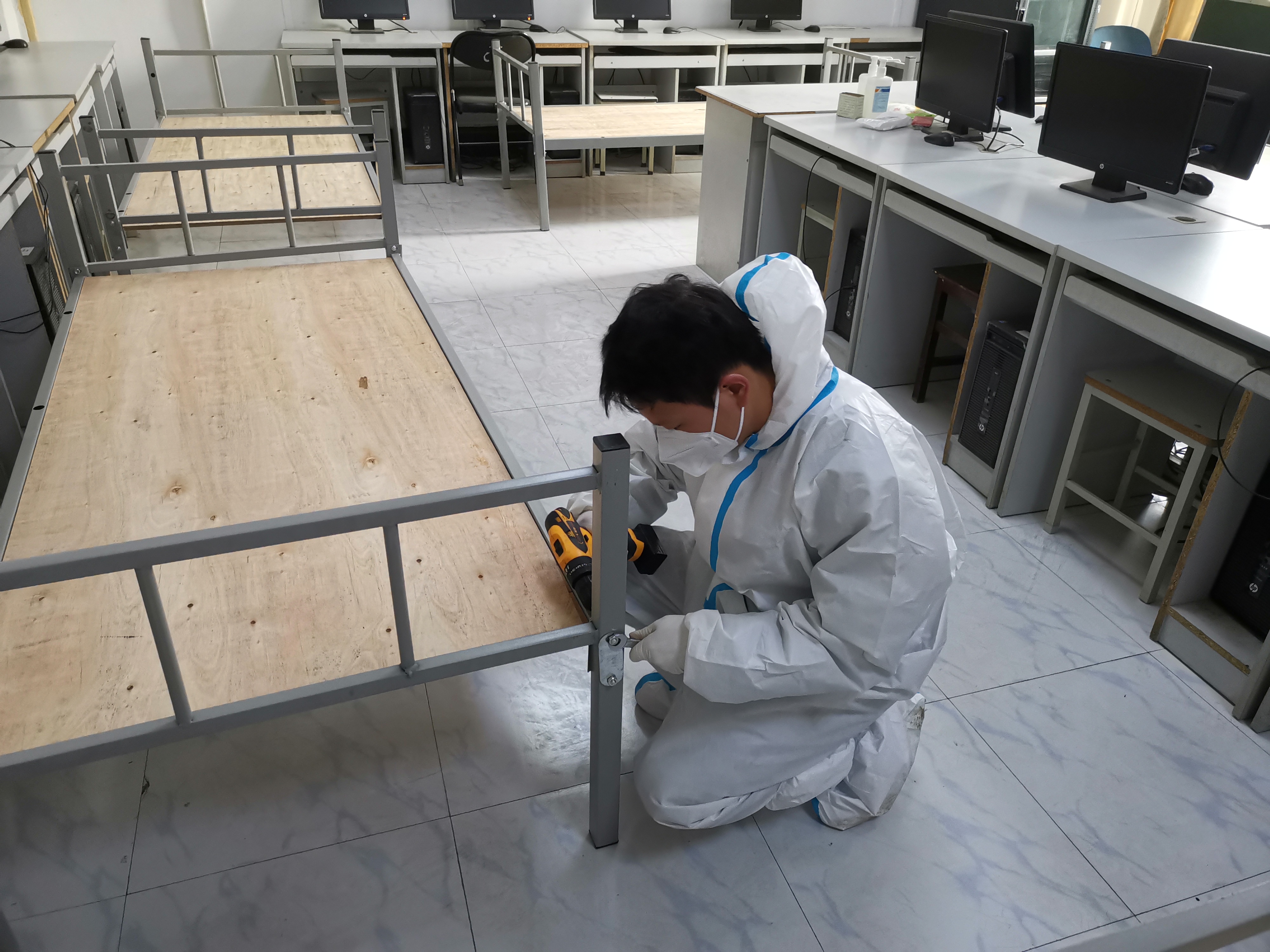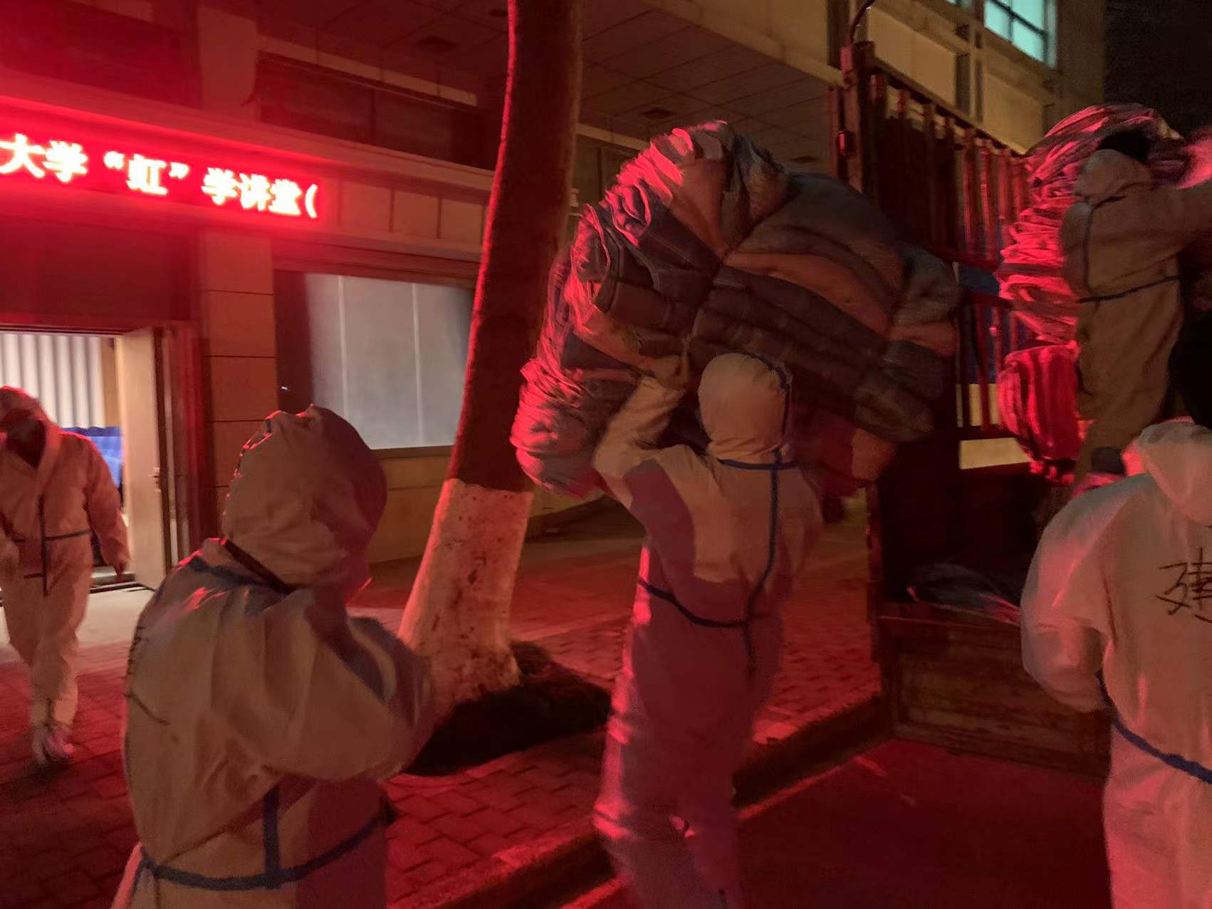 为保障集中隔离期满返校留观学生的住宿条件,1月2日19时,香香漫画 组建志愿服务突击队,在4个小时时间内紧急完成100余张简易床的卸货、搬运、组装任务,并将临时借住的会议室、教室等场所清扫干净,添置生活必需品,尽可能地为返校集中留观同学创造一个温馨、舒适、温暖的“家”。