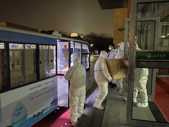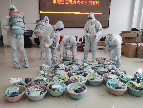 为给同学们营造一个安全卫生的生活环境,学生党员郑舶君、崔子函组织志愿者,每天三次对1、2号学生公寓480余间宿舍的垃圾进行收集、清洁。陈小同、冯明辉、杨季、王关华等多次参与1、2号学生公寓宿舍送餐、物资配送等工作;赵玺作为鸿远教学楼午餐负责人,组织协调200余名隔离学生配餐工作;刘明杰、李宗凯、徐业扬分别承担着20号楼送餐工作。汪成杰、高兴等部分党员作为志愿者骨干成员,负责志愿者的招募、管理、分工、协调与培训,也承担着与医护人员沟通对接、志愿者后勤保障协调等工作。