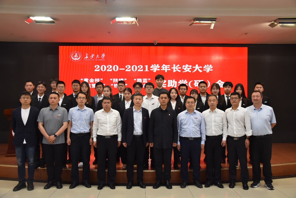 邱旭辉为企业代表陕西建工控股集团有限公司颁发捐赠证书,欧阳韬宣读获奖师生名单,与会领导嘉宾为获奖师生代表颁奖。