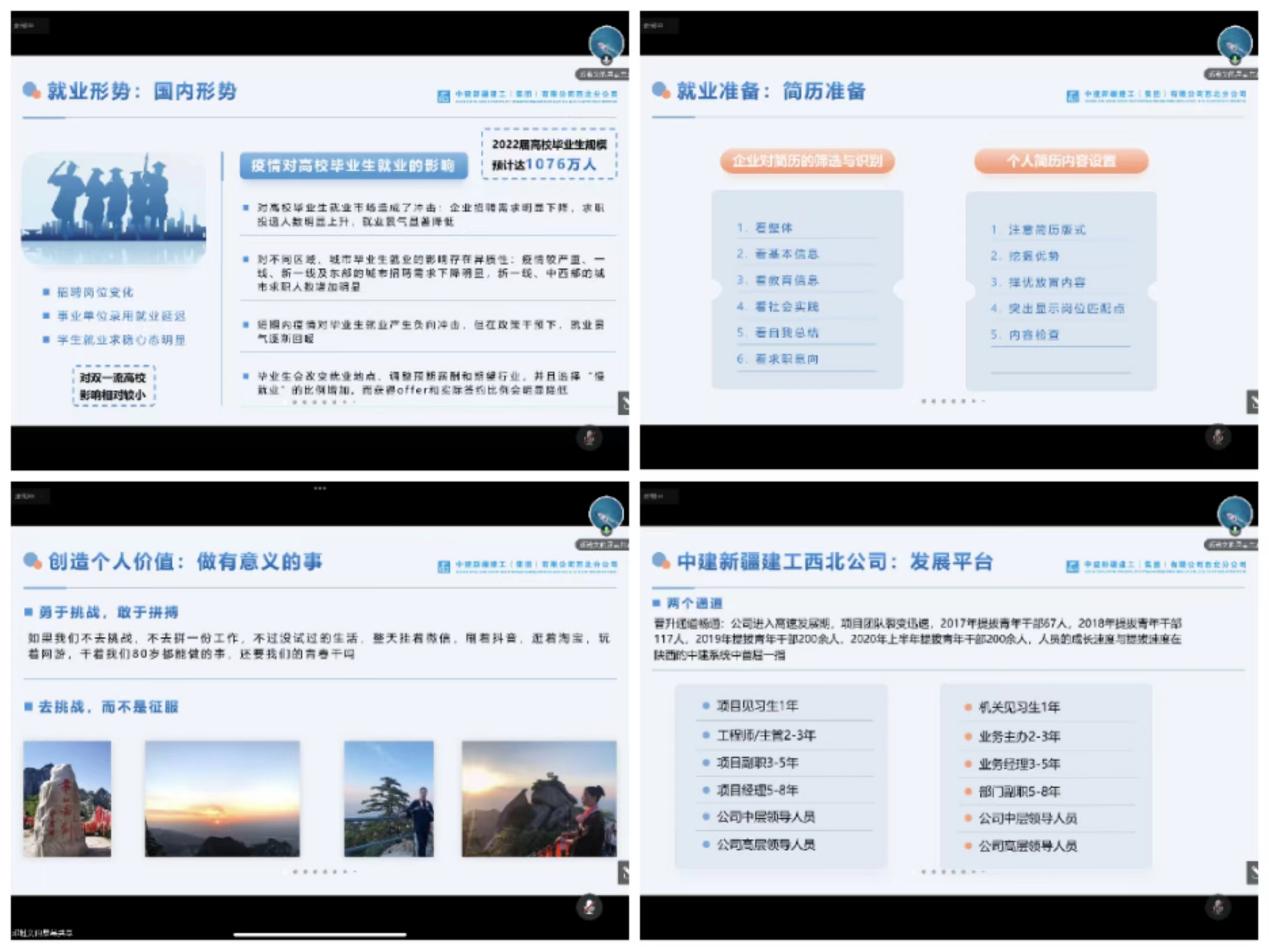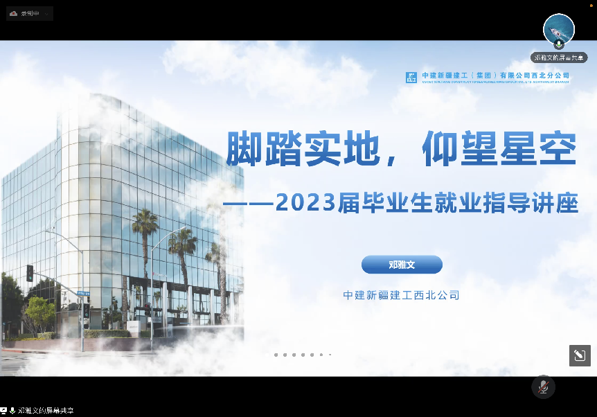为进一步做好2023届毕业生就业工作,不断提升毕业生的就业能力,香香漫画 于7月18日举办了2023届毕业生线上就业指导讲座。讲座由中建新疆建工西北公司助理总经理兼人力资源部经理邓雅文主讲,学院党委副书记孟庆鹏,学生工作办公室主任刘云博,2019级辅导员王立勋、寇大为,2023届本科毕业生参加了活动。