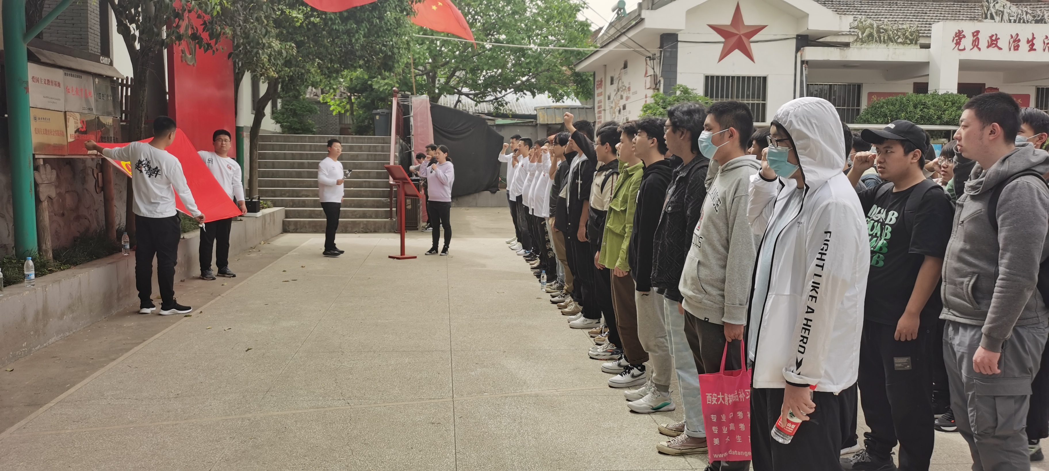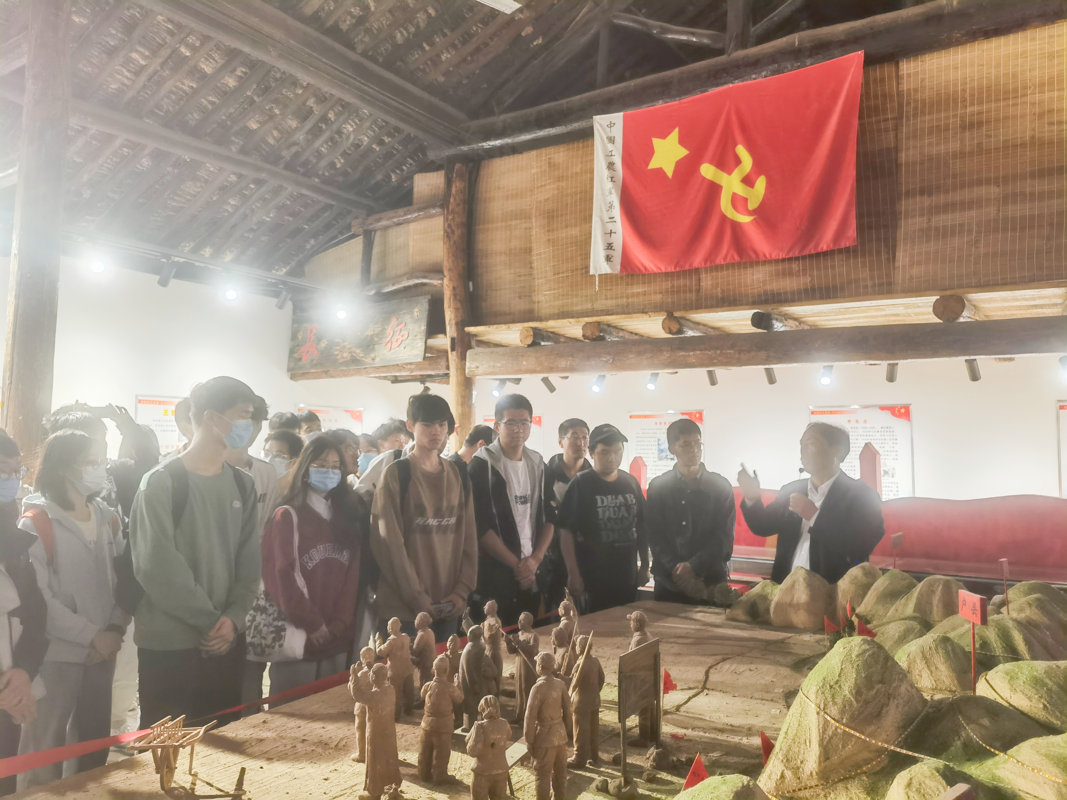 学院师生抵达红军过境户县陈列馆广场后,与中铁一局建安公司优秀员工重温入团誓词,由朱文婕领誓,大家面向团旗,高举右拳庄严宣誓,用铿锵的誓言彰显坚定的政治信念。随后,师生对红军过境户县陈列馆进行参观,详细了解红四方面军、红二十五军及红七十四师过境户县时发生的故事,同学们静静聆听军民鱼水情深的感人故事,感受艰苦卓绝的战斗岁月,缅怀革命先烈,传承红色基因。