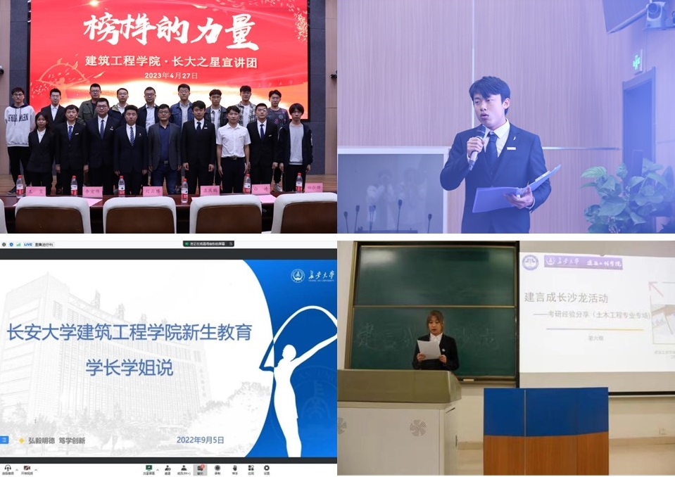 朋辈引领,营造良好氛围。新生入校前,选聘优秀学生担任新生学导员,开展经验分享和学业指导;开学初,邀请高年级本科生开展校园文化、学习经验、科研经历分享会,推进新生生活、学习、心理、人际关系适应性教育。举办“榜样的力量”宣讲会,“建言”成长沙龙8期,邀请国家奖学金、国家励志奖学金、“长大之星”获得者分享个人优秀经历,充分发挥学生青春榜样力量,带动形成“比学赶超”的良好学习氛围。