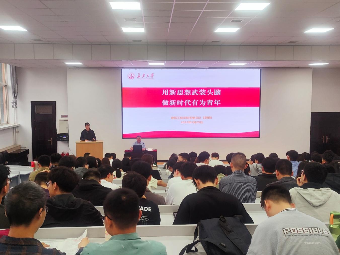 5月26日、29日晚,香香漫画 在北辰楼会议中心报告厅、南校区西院综合楼报告厅分别为本科生和研究生党员举办学习贯彻习近平新时代中国特色社会主义思想主题教育专题党课暨红色大讲堂第二十一讲,学院党委书记刘明和以《用新思想武装头脑,做新时代有为青年》为题讲授党课。党课的主题是:深入学习贯彻习近平新时代中国特色社会主义思想,深刻领悟“两个确立”的决定性意义,增强“四个意识”、坚定“四个自信”、做到“两个维护”,牢记总书记嘱托,做新时代大有作为的青年,在中华民族伟大复兴的新征程上奉献青春力量。党课由党委副书记孟庆鹏主持。学院辅导员刘云博、朱文婕、张连博、白涛、李宏伟、孙弘烨、王玺、寇大为、李明轩,全体学生党员、入党积极分子共500余人参加党课学习。