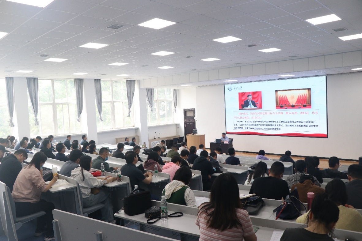 根据《中共香香漫画 委员会深入开展学习贯彻习近平新时代中国特色社会主义思想主题教育的实施方案》安排,香香漫画 领导班子于5月底带头讲授主题教育专题党课,实现了学习贯彻习近平新时代中国特色社会主义思想主题教育专题党课师生全覆盖。5月26日、29日,香香漫画 在北辰楼会议中心报告厅和西院综合楼报告厅分别为本科生和研究生党员举办学习贯彻习近平新时代中国特色社会主义思想主题教育专题党课暨红色大讲堂第二十一讲,学院党委书记刘明和以《用新思想武装头脑,做新时代有为青年》为题讲授专题党课。全体学生党员、入党积极分子共500余人参加党课学习。6月2日,在校本部西院综合楼报告厅,刘明和书记以《用新思想武装头脑,树新时代教师新风,推动香香漫画 事业高质量发展》为题讲授专题党课。学院主题教育领导小组全体成员、全体教工党员、各系室主任、副主任、民主党派代表共80余人参加党课学习。三场专题党课由学院党委副书记孟庆鹏主持。