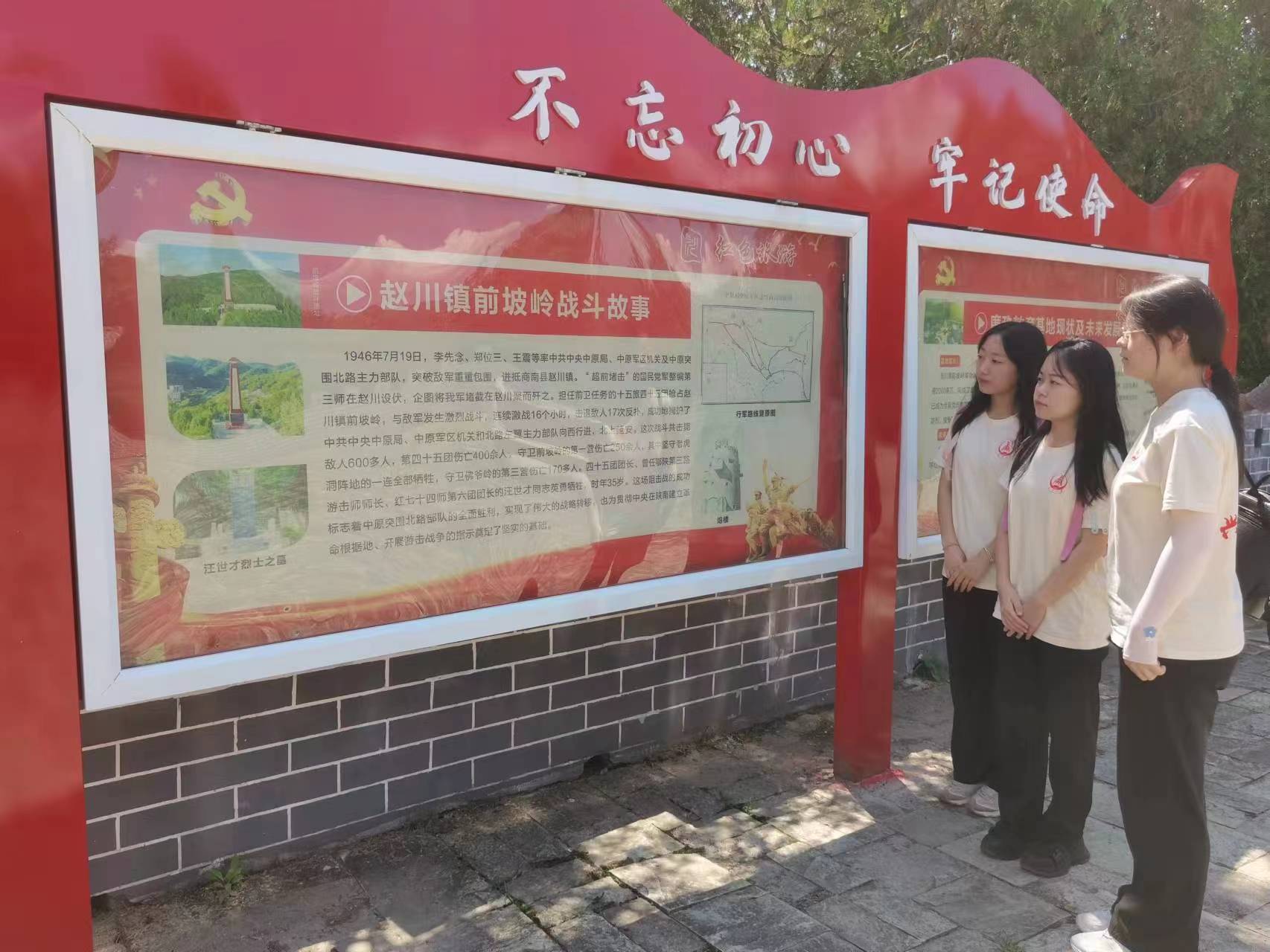 实践队于7月16日前往赵川镇前坡岭战斗遗址追寻红色记忆,缅怀革命烈士。通过讲解员的讲解,了解前坡岭战斗故事,在前坡岭革命烈士纪念碑与无名烈士之墓前,实践队员们通过默哀鞠躬、重温入党誓词等形式,表达对革命烈士深切的缅怀与追思。