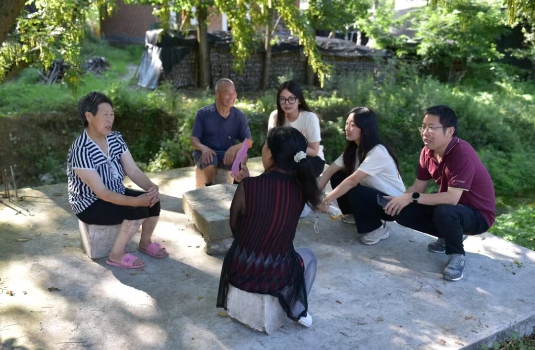 与三合村居民交流