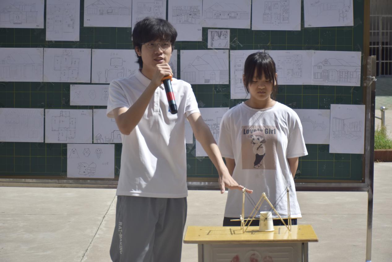 坚持美育润心,丰富第二课堂教育。实践队员充分利用学校现有资源,广泛开展音乐美术实践教育,丰富学生课余生活。实践队员结合自身学科专业增设结构模型设计制作等新型教学内容,培养学生审美能力、动手能力。举办文艺汇演活动,为学生搭建才艺成果展示的舞台,表彰优秀成果与作品,营造比学赶超的校园氛围。