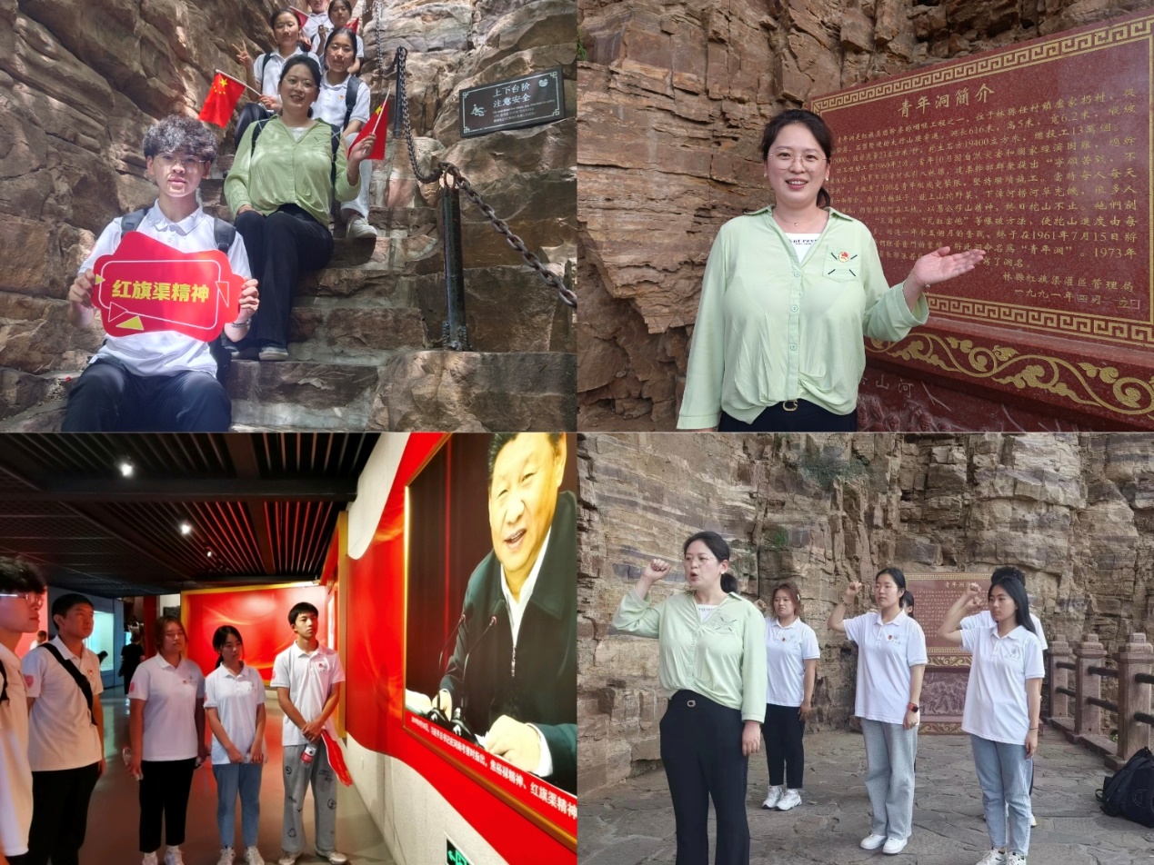 实践队员步行2.5公里前往红旗渠青年洞,用步伐丈量红旗渠,感受林州人民开凿的不易。指导老师以青年洞为背景讲授了主题团课,带领实践队员们在党旗前重温入党誓词,宣扬“自力更生、艰苦创业、团结协作、无私奉献”红旗渠精神,铸牢理想信念之基