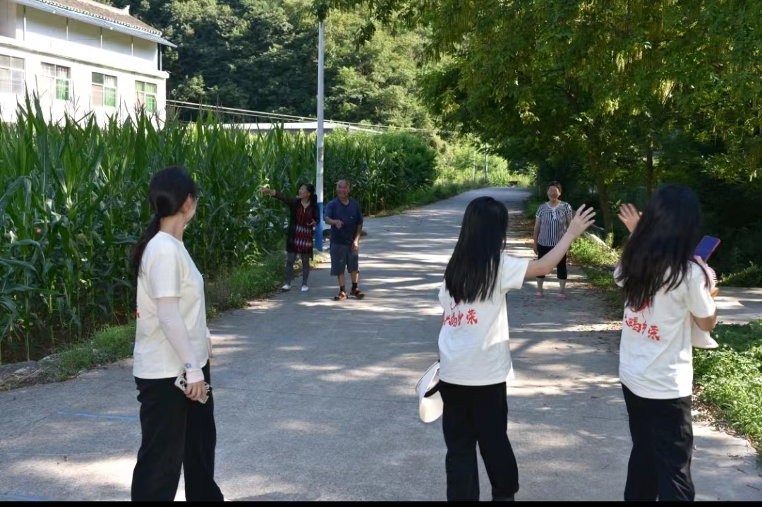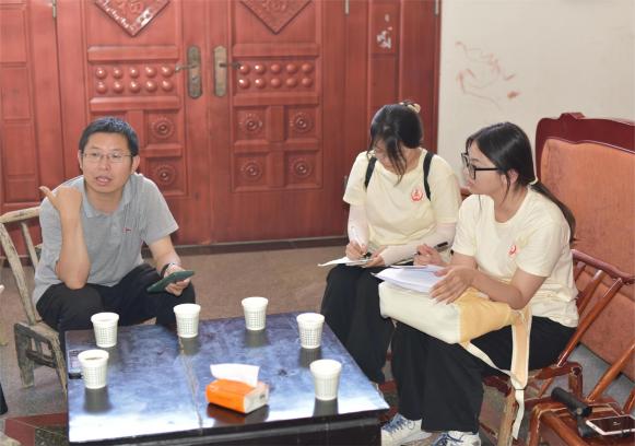 实践过程中,实践队成员分别与学院教师、商南县副局长段留省老师、湘河社区支部委员、三合村居民进行了交流座谈。沉下心、俯下身、听民声、察民情,通过面对面交谈,队员们了解到,在国家的大力扶持下,商南县近年来已经有了快速发展,同时也面临着人才极度缺乏的困境。乡村老人居多、年轻人都选择去城市发展、人才留不住等问题限制了乡村的发展。