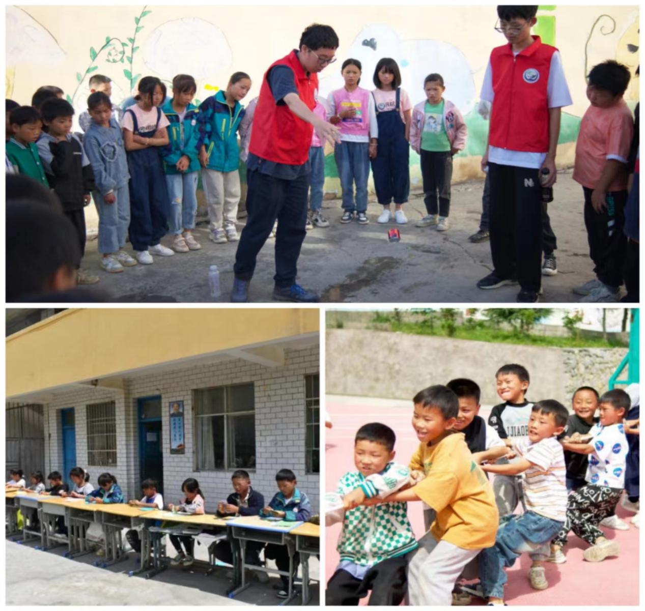 在课堂之余,实践队成员举办了一系列课外活动丰富同学们的课余生活,帮助同学们全面发展。“挑战自我,勇敢表达”演讲比赛锻炼他们的演讲技巧、表达能力和自信心,引导同学们在主题范围内进行自我思考,站在舞台上表达自己的观点和梦想;“云里悟理”科学实验激发学生们的好奇心和创造力,培养他们的科学素养和实验技能;“团队协作,共享运动乐趣”拔河比赛加强学生们的体育锻炼意识,培养团队合作精神;“创意与巧思,环保我先行”手工比赛培养同学们的创造力和想象力,锻炼了同学们的动手能力和设计思维;“活力校园,清新未来”校园卫生打扫活动培养同学们吃苦耐劳、艰苦奋斗的精神,美化校园环境;“壁上绘梦,美丽篇章”墙绘活动培养同学们的绘画艺术,加深对乡村振兴以及美丽乡村的理解……14天的支教生活很短,但实践队成员精心准备每一天的课程,认真策划每一次活动,致力于帮助街边小学的同学们德智体美劳全面发展,提高综合素质。
