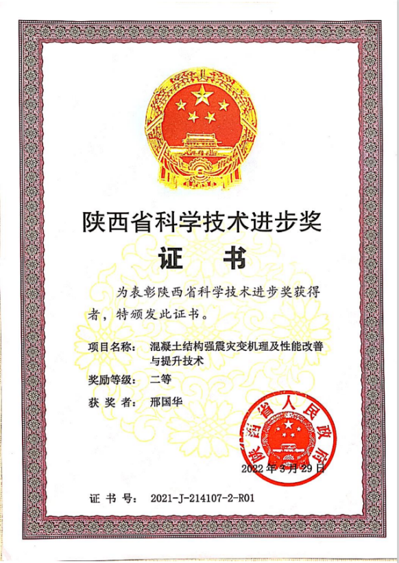 邢国华教授长期从事工程结构强震分析与评估、在役结构增韧补强与运维监测、高烈度区重大结构减隔震技术应用、新型混凝土结构体系和智能结构等方面的研究,取得了系列重要成果。先后负责国家自然科学基金项目4项,陕西省技术创新引导专项基金、陕西省自然科学基金等纵向科研项目16项,参与国家自然科学基金、教育部高校博士点基金等10余项省部级以上科研项目。发表高水平学术论文120余篇,出版学术专著及教材2部。主持完成科研成果“混凝土结构强震灾变机理及性能改善与提升技术”获2022年陕西省科学技术进步奖二等奖。曾获2017年陕西省科学技术一等奖、2017年西安市科学技术一等奖、2018年新疆维吾尔自治区科技进步一等奖、2020年度陕西省高等院校科学技术一等奖。
