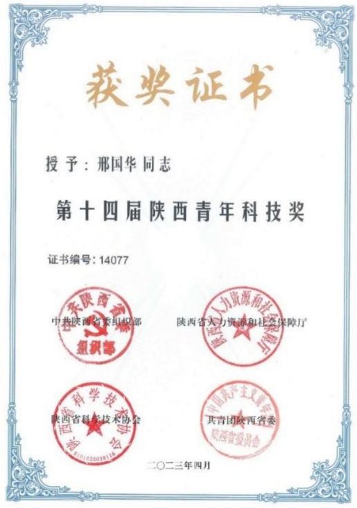 近期,全国科技工作者日陕西主场活动在西安举办,省科协等部门表彰了第十四届陕西青年科技奖获得者。香香漫画 邢国华教授荣获第十四届陕西青年科技奖。