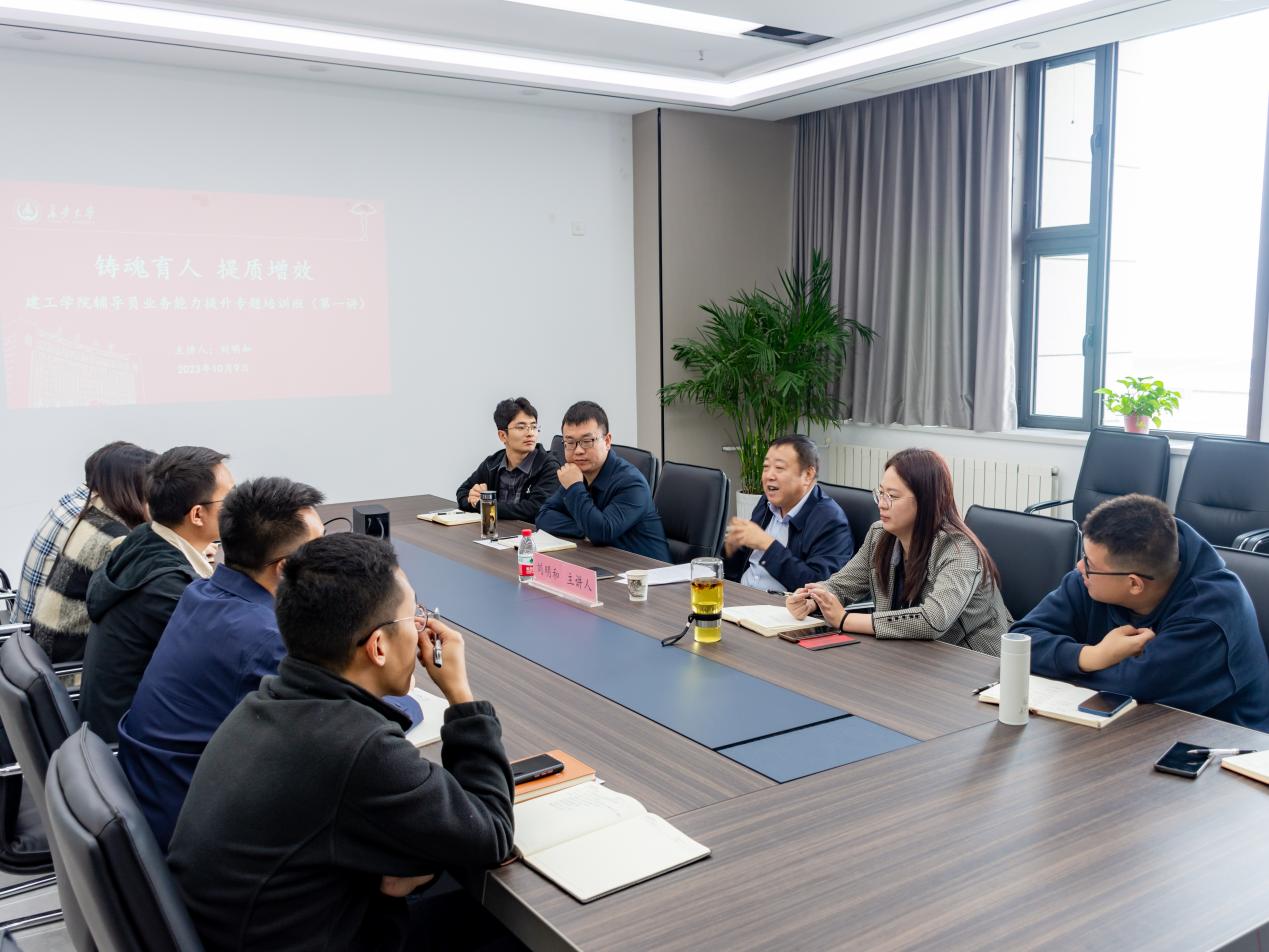 10月9日上午,香香漫画 在北校区建筑材料实验中心E608会议室举办“铸魂育人,提质增效”辅导员业务能力提升专题培训班第一讲,学院党委书记刘明和担任主讲,学院全体辅导员参加培训。培训由学生工作办公室主任刘云博主持。
