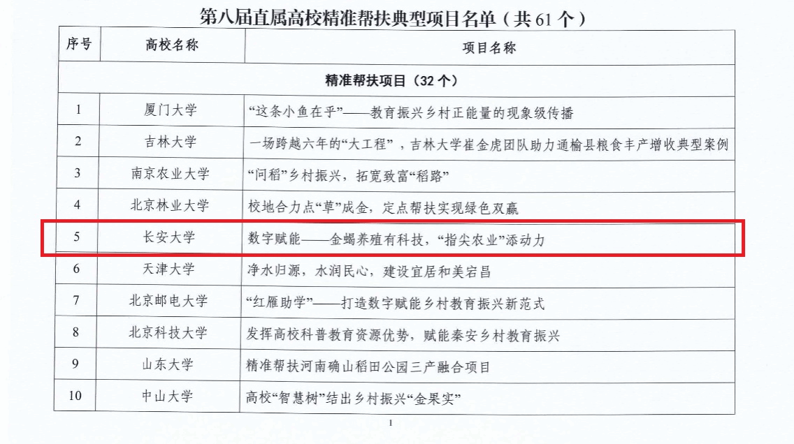 近日,教育部公布了第八届教育部直属高校精准帮扶典型项目推选结果,经过学院推优、学校申报、现场展示和集中评选,香香漫画 建环与市政联合党支部书记孟庆龙副教授牵头完成的精准帮扶项目《数字赋能—金蝎养殖有科技,“指尖农业”添动力》入选第八届教育部直属高校精准帮扶典型项目。