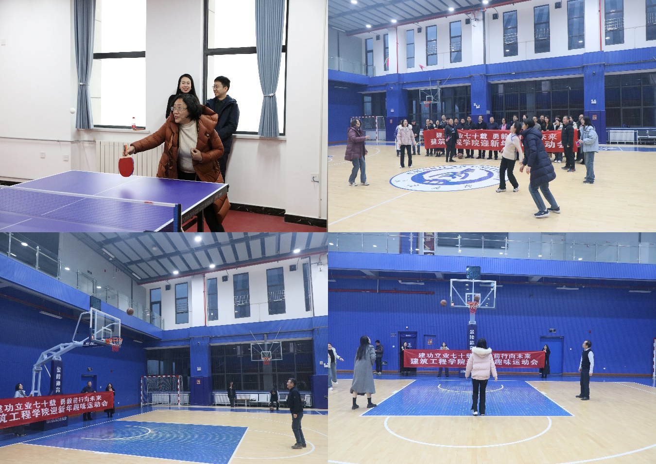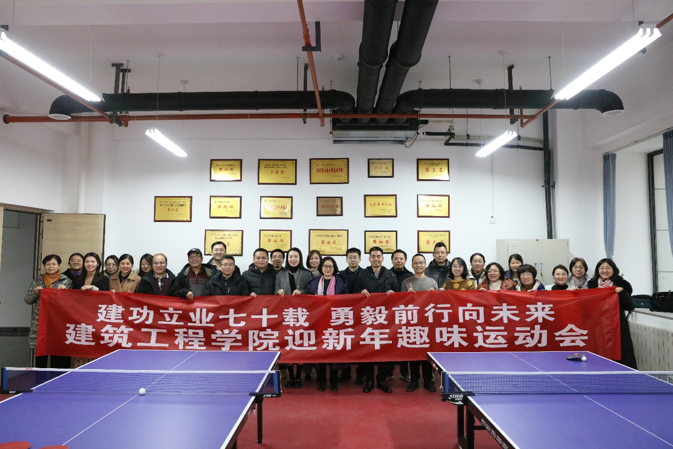 在庆祝建筑工程专业办学70年之际,为丰富教职工精神文化生活,增强学院广大教职工的向心力和凝聚力,增进联络教职工与校友之间的感情,12月29日下午,香香漫画 在渭水校区乾健综合馆和致远大厦学院工会活动室举办了主题为“建功立业七十载、勇毅前行向未来”迎新年趣味运动会。学院党委书记刘明和、党委副书记副院长闫秀萍、副院长胡志平出席并参加,50余名教职工和校友参加了此次活动。