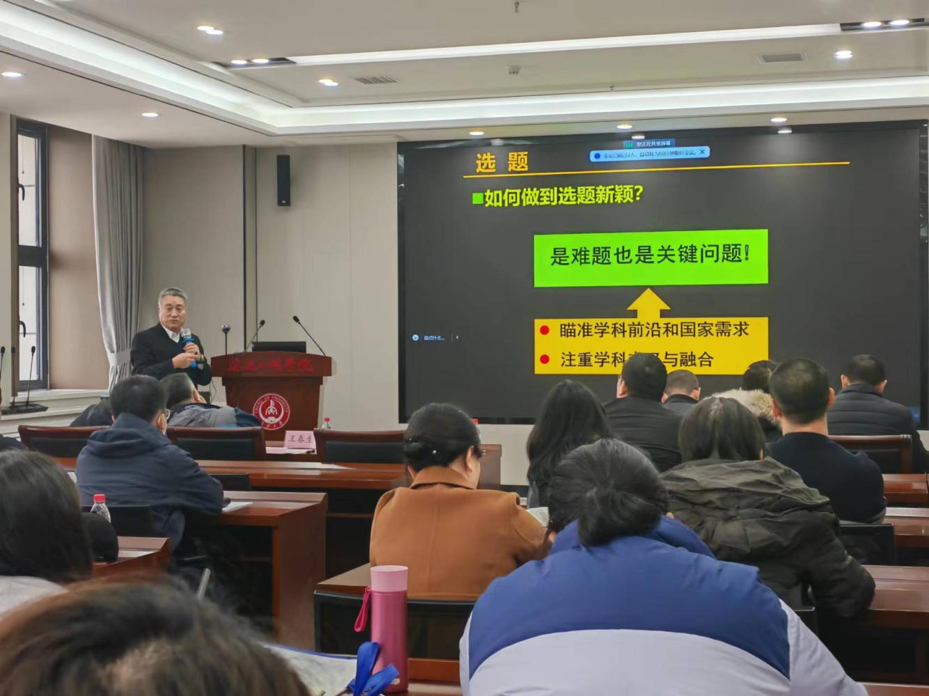 会上,牛荻涛做了关于《选题与基金项目申请》的专题讲座。他从基金的选题、申请书的撰写以及专家评审的角度进行分享,为学院教师申请国家自然基金提供了宝贵经验。