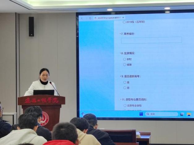 胡志平首先对教务处的来访调研表示热烈欢迎,接着指出存在的普遍性学业问题。随后,李院春对学生调查问卷做了详细介绍、说明。会场上学生按照要求进行了线上填表。