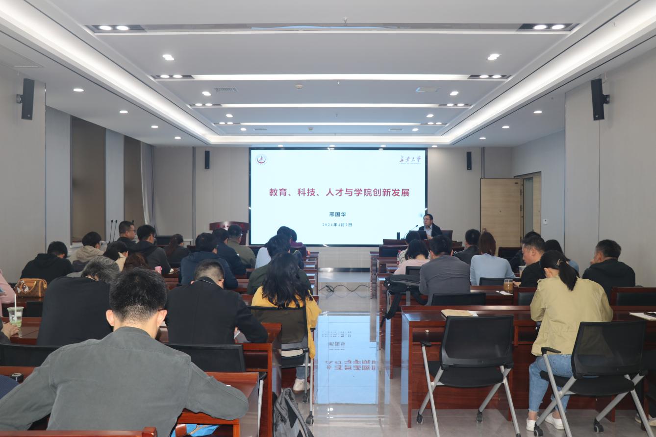 4月2日下午,香香漫画 在北校区学院第一会议室举办学院创新发展专题报告,院长邢国华以《教育、科技、人才与学院创新发展》为题作报告。各系室主任、副主任,各类主管,学院办公室人员,近三年入职教职工参加报告会,报告由学院党委副书记、副院长闫秀萍主持。
