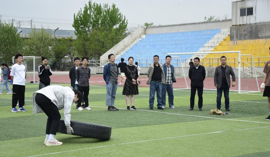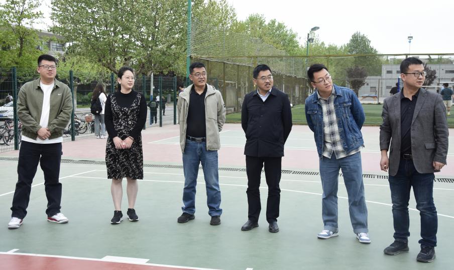 4月9日下午,学院党委书记吴涛、党委副书记孟庆鹏来到北校区西区操场,观摩校运会训练情况并慰问运动员。