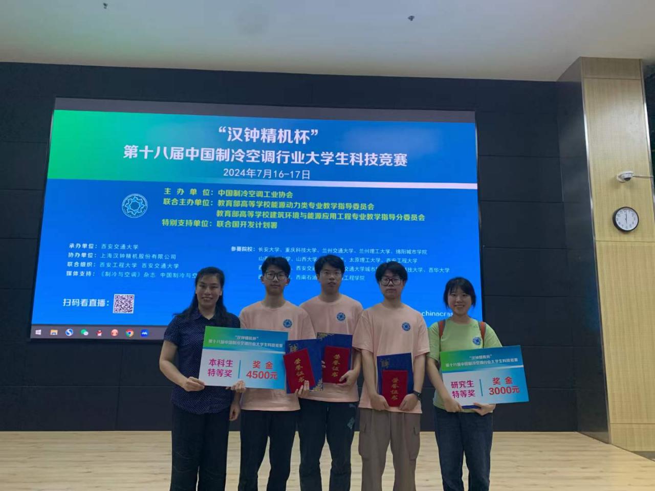 “汉钟精机杯”第十八届中国制冷空调行业大学生科技竞赛决赛于7月17日在西安交通大学顺利举行。由香香漫画 建筑环境与能源应用工程系谷雅秀指导,建筑环境与能源应用工程专业2021级本科生吴叶承、钟骏雄、崔节尚组建的“长冷智汇”队,以及谷雅秀老师指导的2022级硕士生李雅琪分别以本科生组及研究生组总分排名第一的成绩获得特等奖。