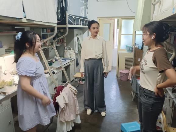 走访宿舍过程中,马熠航根据本科生各年级学生的阶段性特点,与学生就入学适应、学业规划、考研推免政策、就业选择等多方面进行了深入交流。她勉励大一新生积极适应大学生活,逐步培养自我管理和独立生活的能力;鼓励学业困难学生正视学业问题,积极参加学院学业帮扶活动,努力提升专业知识;向面临考研推免的高年级学生介绍相关政策和学校资源,帮助他们明确目标;重点关注毕业年级学生的求职意向和就业现状,结合当前的就业形势,给予了针对性指导。对于研究生,她详细询问学生的学业和科研进度,针对当前的就业形势分析行业动态和人才需求,建议同学们根据自身情况灵活调整就业目标。