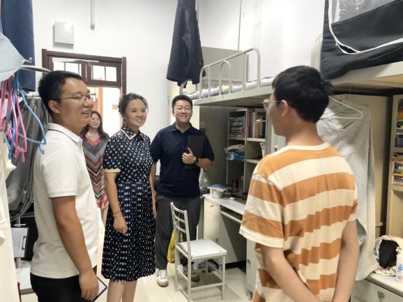 中秋假期前夕,为深入了解学生思想动态及学习、生活情况,摸排各类安全稳定风险,及时发现和解决学生面临的困难,确保学生工作有序、平稳开展,9月13日和14日,学院党委副书记马熠航同全体辅导员一起深入学生宿舍走访慰问,并向同学们致以中秋佳节的问候。