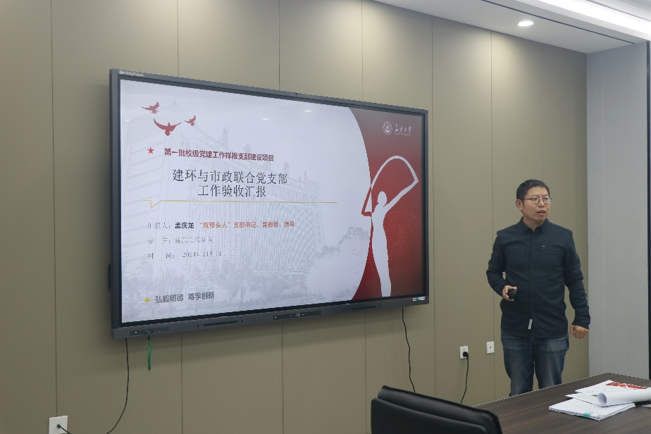 会上,王艳首先代表学校党委向与会人员介绍了两年来学校党建“双创”工作建设情况,对本次验收工作的要求和目的进行了传达。孟庆鹏对学院党建“双创”建设情况和特色亮点进行了总结。学院建环与市政联合党支部书记孟庆龙、中国特色社会主义理论学习研究会党支部王玺分别汇报了本支部的建设情况。随后,验收组王艳、欧阳韬、刘小莉分别进行了现场询问和点评。