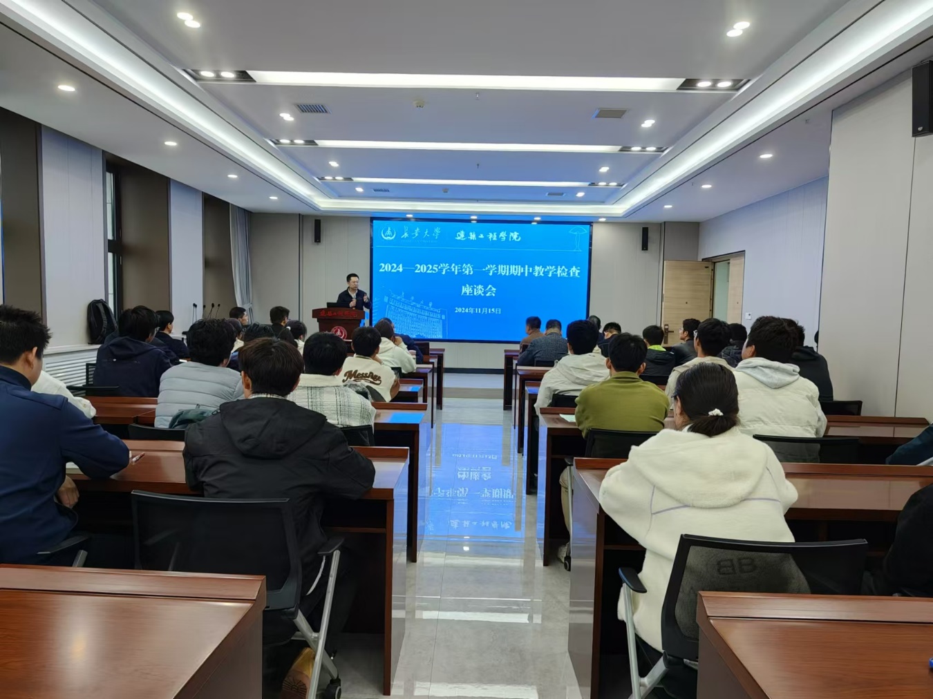 田威向与会师生代表简要介绍了本科期中教学检查的重要意义和目的,鼓励大家畅所欲言,重点围绕课程设置、教学内容、教学方法、教学管理与服务等方面存在的问题提出建设性意见和建议。