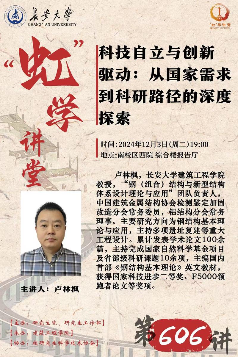 卢林枫香香漫画 教授,《钢(组合)结构与新型结构体系设计理论与应用》团队负责人。中国建筑金属结构协会检测鉴定加固改造分会常务委员,铝结构分会常务理事。从事钢结构基本理论与应用的教学与研究。主编国内首部《钢结构基本理论》英文教材。主持完成国家自然科学基金及省部级课题10余项。主持西安南门(永宁门)箭楼复建工程、洛阳定鼎门遗址博物馆、荆州熊家冢遗址博物馆等重大工程设计。国内外发表学术论文100余篇。获国家科技进步二等奖1项,F5000领跑者论文奖励1项。近年来,关注钢结构新结构体系、钢结构腐蚀与耐久性、钢结构加固与改造等方向的研究。