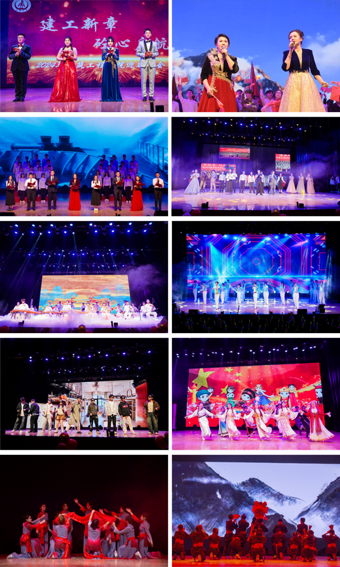 晚会在开场舞《友你真好 舞动青春》中拉开序幕,彰显青春的蓬勃朝气;歌曲串烧《歌咏心声 静待生花》和舞蹈串烧《舞韵风华》以悠扬的旋律和优美的舞姿,巧妙融合现代律动与民族风采;小品《指尖上的诱惑》启迪学生善用学业帮扶,向手机诱惑说“不”;街舞《狮舞扇韵 未央长安》巧妙融合现代街舞与传统文化,碰撞出一场视觉盛宴;民乐《象王行》凭借传统中华乐器之韵,展示大自然的和谐与力量;朗诵《一建倾心 筑梦未来》和舞蹈《红色印记》追忆往昔奋斗历程,指引未来前进方向;歌曲《我和我的祖国》激发了全场青年对祖国的热爱与自豪,将全场气氛推向高潮。