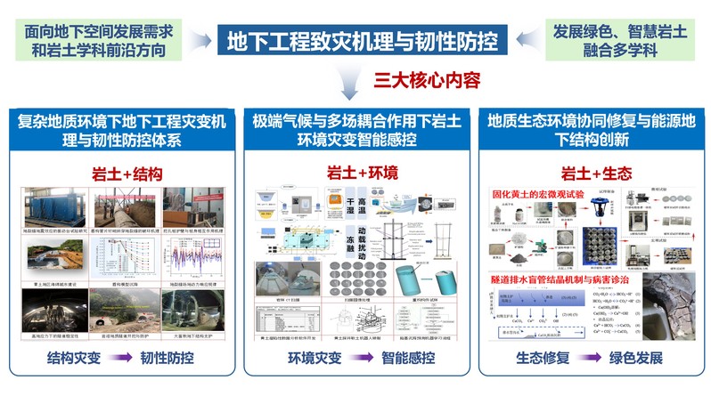 地下工程系围绕国家中长期战略需求、国际地下工程发展前沿和西北地质环境特色,以“安全—绿色—智能”三位一体为导向,系统开展地下空间开发与韧性防控方面的研究,形成了以“岩土+结构”、“岩土+环境”、“岩土+生态”为主体思路的三大核心研究内容:复杂地质环境下地下工程灾变机理与韧性防控、极端气候与多场耦合作用下岩土环境灾变智能感控、地质生态环境协同修复与能源地下结构创新。承担的研究项目涉及岩土体生态加固、地下重点工程智能防控、岩土工程中的固废再利用、海上风电基础等领域。