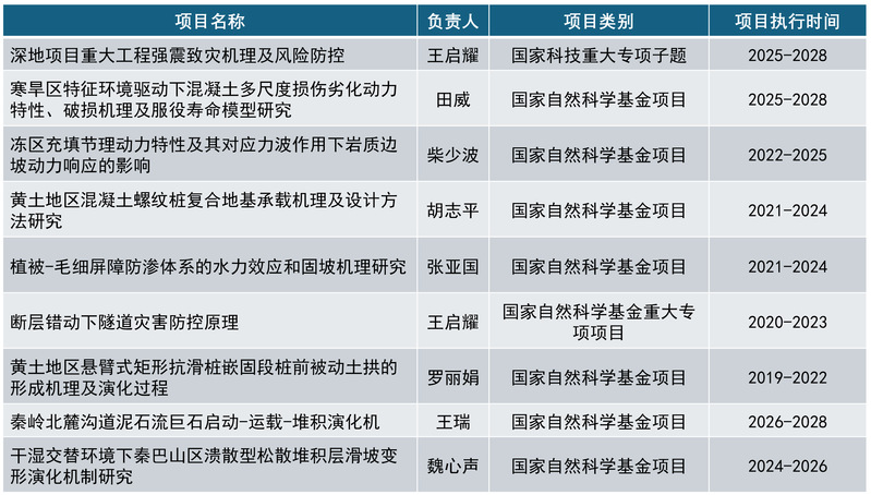 地下工程系先后获得了多项国家自然科学基金、省重点研发计划等科技项目,年均科研到款四百多万元,近5年在国内外知名刊物发表高水平学术论文百余篇。近年来地下工程系教师主持的部分国家级项目如下: